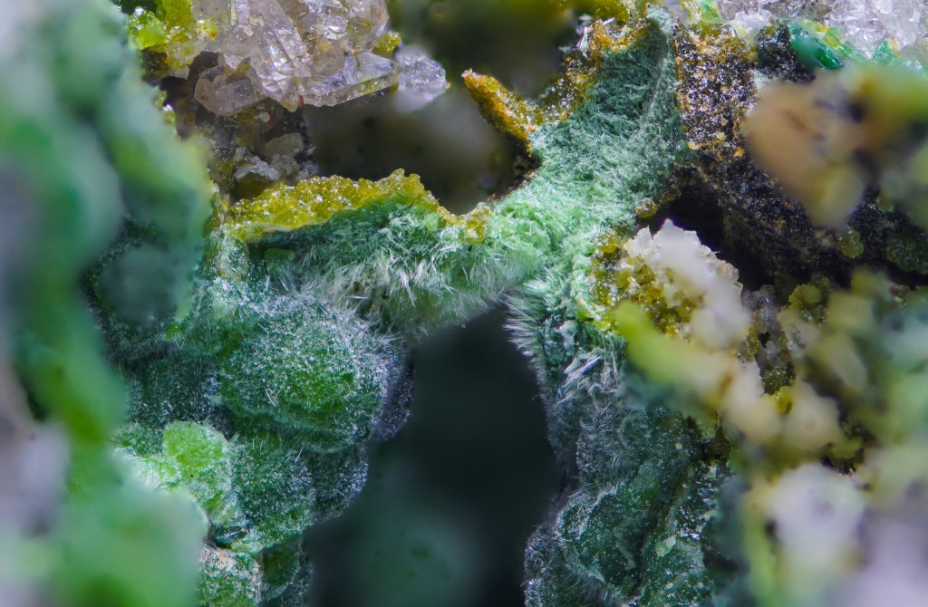 Olivenite, cornwallite, clinoclase, and parnauite